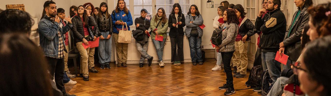 Experiencia acompañada por una o un facilitador/a de Londres 38 que recorre el espacio junto a visitantes relatando la historia del lugar con foco en su uso como centro de represión de la DINA en dictadura, en las características generacionales y militantes de los protagonistas de esta historia, las luchas de denuncia y recuperación del inmueble y en el proyecto actual como espacio de memorias, buscando promover el diálogo y la reflexión con las memorias de quienes visitan de la visita. Para acceder a una visita dialogada en Londres 38, es necesario agendar una hora al correo visitas@londres38.cl o vía formulario.