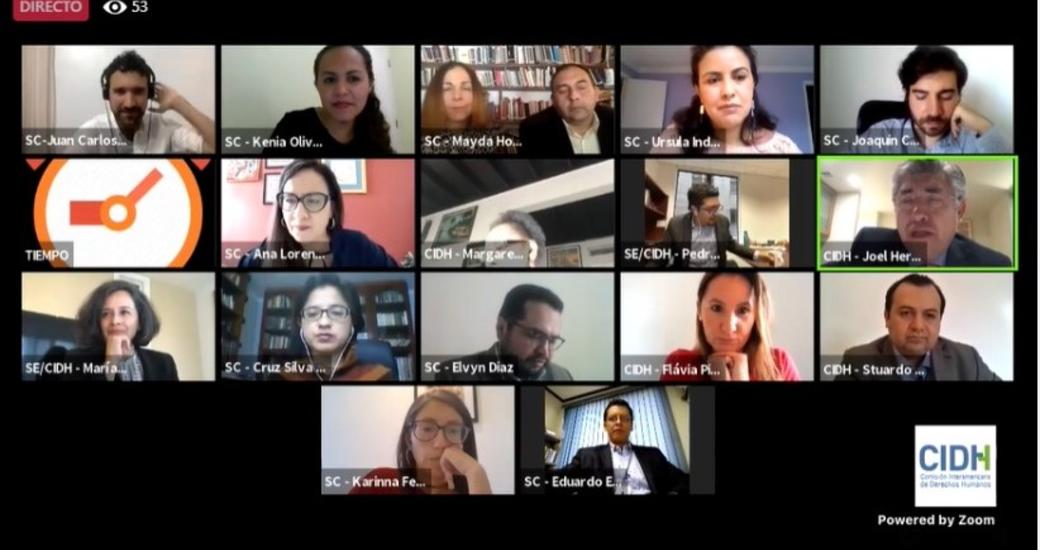 A través de una conferencia virtual, las y los representantes de cada país realizaron una breve intervención destacando las dificultades específicas de cada Fiscalía, ante Joel Hernández, presidente de la CIDH y el relator para Chile. En esta audiencia virtual, participaron representantes de Venezuela, Perú, México, Honduras, Guatemala, El Salvador, Ecuador, Colombia, Chile, Bolivia y Argentina.