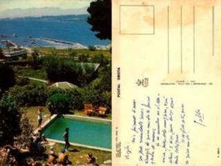 Postal del lago Villarrica enviada por Gregorio a su madre durante su viaje al sur de Chile en enero de 1972. La imagen muestra una toma panorámica del lago visto desde Yachting Club, un hotel equipado para veraneantes y visitantes del lago. Al reverso se encuentra una dedicatoria escrita a mano por Gregorio a su madre, donde le expresa su cariño y afecto, además de contarle que pasará dos días en Villarrica para luego dirigirse a Calafquén, zonas de gran interés turístico en la actual región de la Araucanía.
